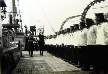 Шведский король Густав V совершает обход команды крейсера "Баян"