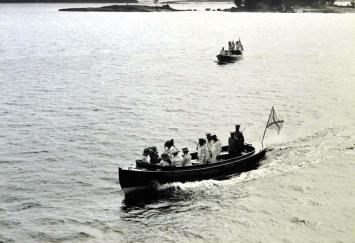 Дочери Императора Николая II плывут на моторном катере.