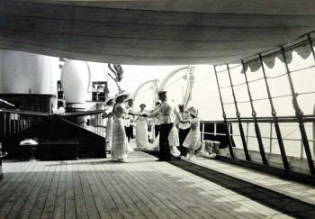 Дочери императора Николая II и офицеры танцуют на палубе яхты "Штандарт".