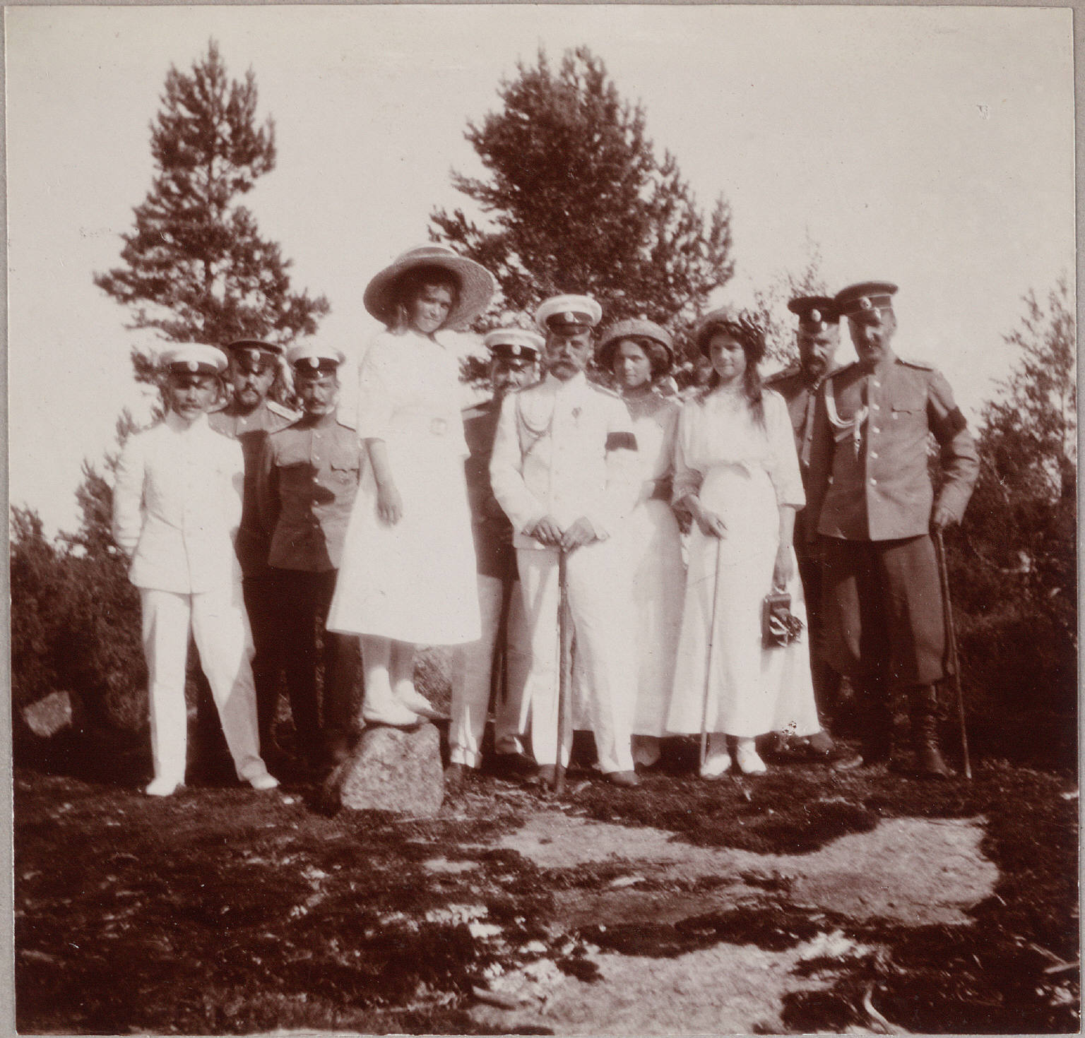В.К. Мария, Николай II, В.К. Ольга, В.К. Татьяна с офицерами ГЭ