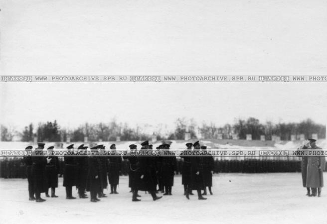 Император Николай II в группе генералов на смотре молодых матросов. Дата съемки 24 февраля 1914г.