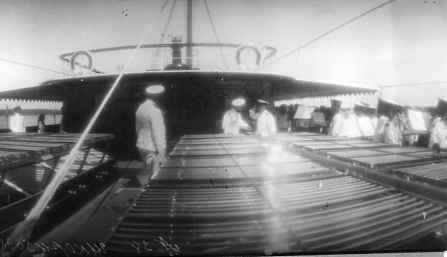 Император Николай II (в центре) беседует с офицером на борту яхты "Штандарт".