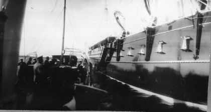Император Николай II со свитой на катере подплывает к яхте "Штандарт".