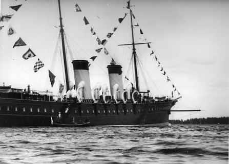 Встреча императора Николая II c королем Швеции Густавом V Адольфом на яхте "Штандарт". Гости поднимаются по трапу на яхту.