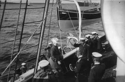 Императрица Александра Федоровна поднимается на борт яхты "Штандарт" после прогулки по побережью.