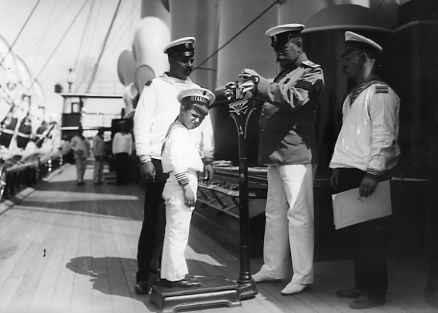 Капитан яхты "Штандарт" И.И.Чагин взвешивает на весах наследника-цесаревича Алексея