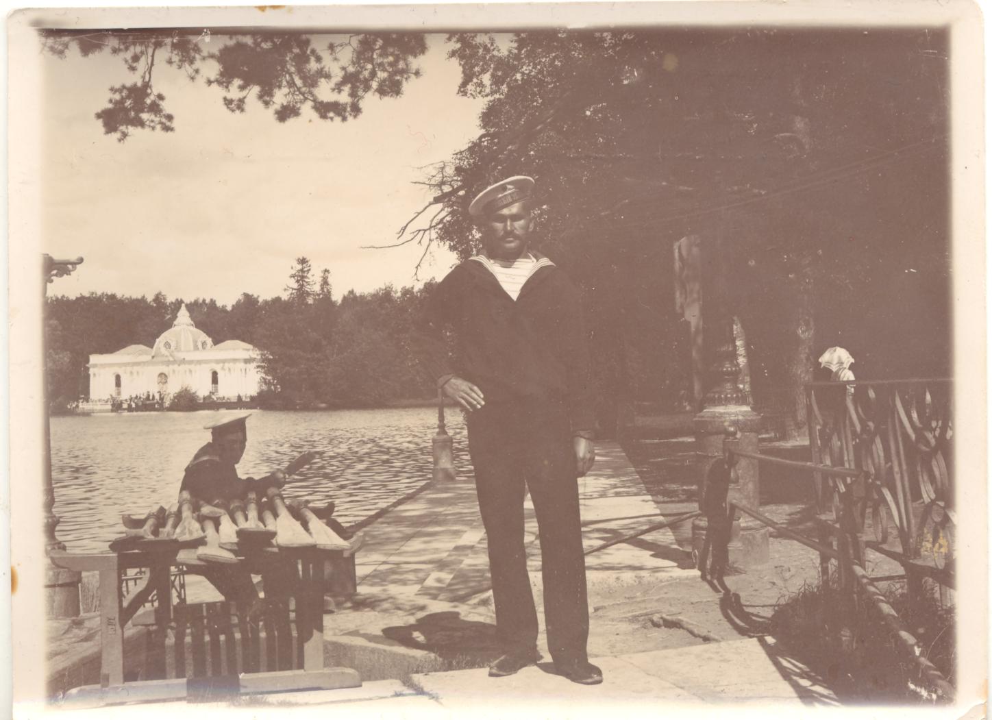Большой пруд Екатерининского парка, на дальнем плане павильон "Грот"