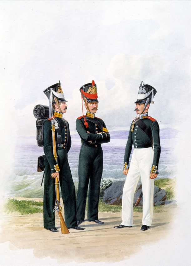 Матрос-канонир Артиллерийской команды и унтер-офицеры Гвардейской ластовой роты.1826-1828гг.