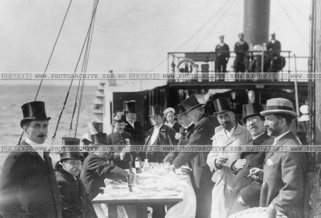 Группа лиц, сопровождающих Императора Вильгельма II на борту Императорской яхты "Александрия". Июнь 1906