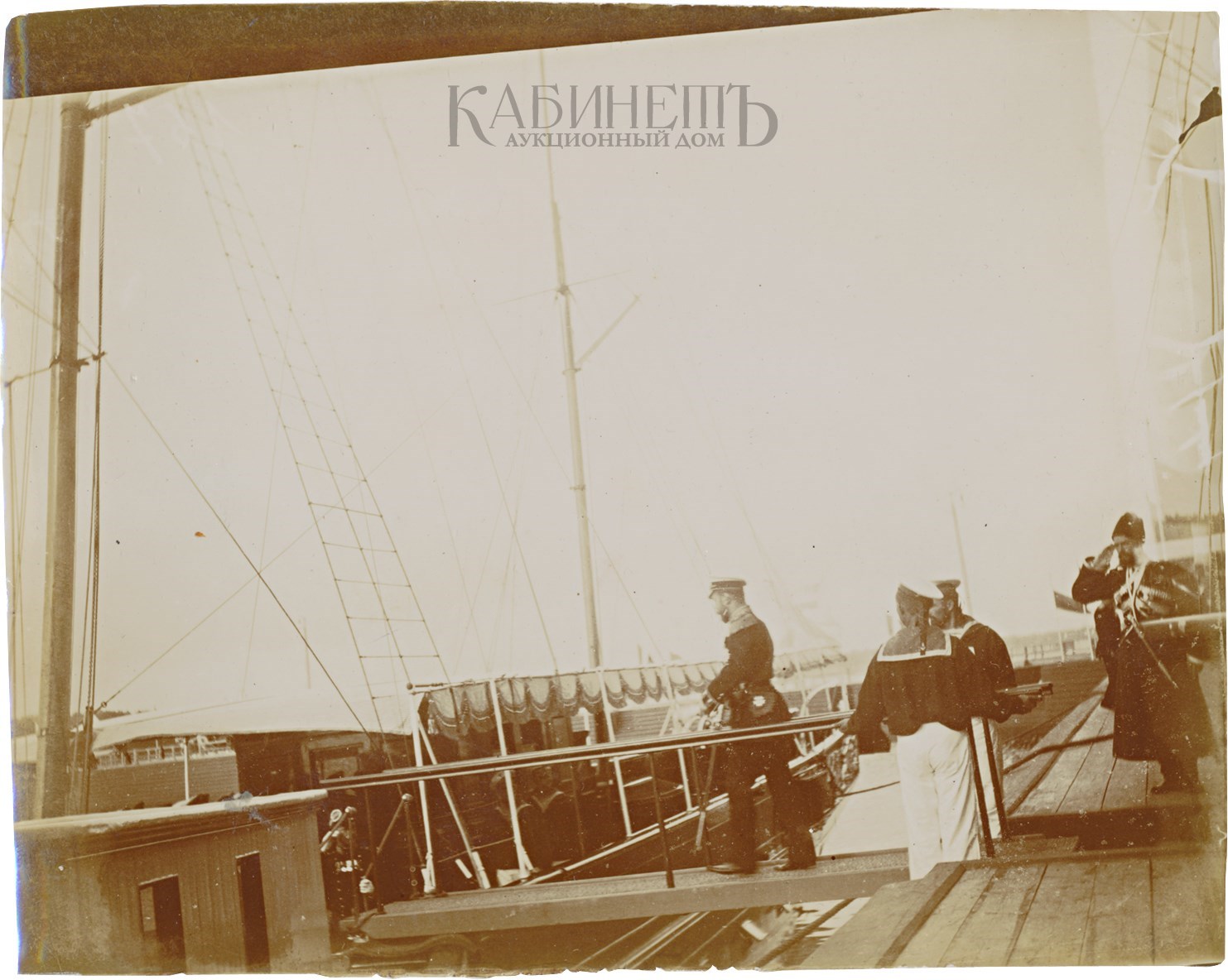 Император Николай II сходит с Петергофского дебаркадера на яхту «Александрия».
