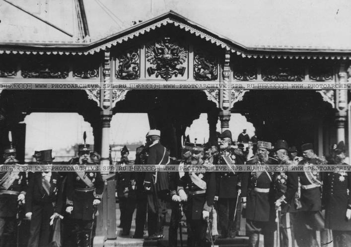 Группа высших чинов на пароходной пристани на встрече румынского короля Карла I. июль 1898