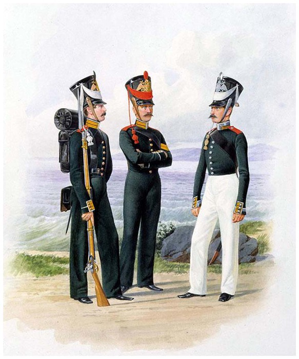 Матрос-канонир Артиллерийской команды и унтер-офицеры Гвардейской ластовой роты.1826-1828гг.