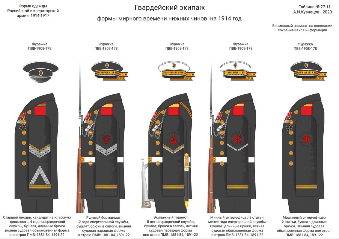 Таблицы знаков различия и обмундирования Гвардейского морского экипажа на 1914 год, составленные А.И. Кузнецовым >