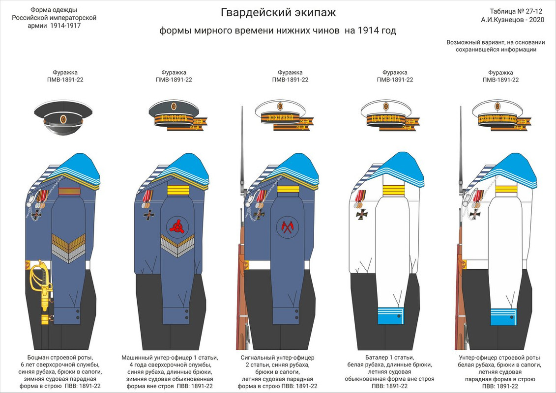 Таблицы знаков различия и обмундирования Гвардейского морского экипажа на 1914 год, составленные А.И. Кузнецовым >
