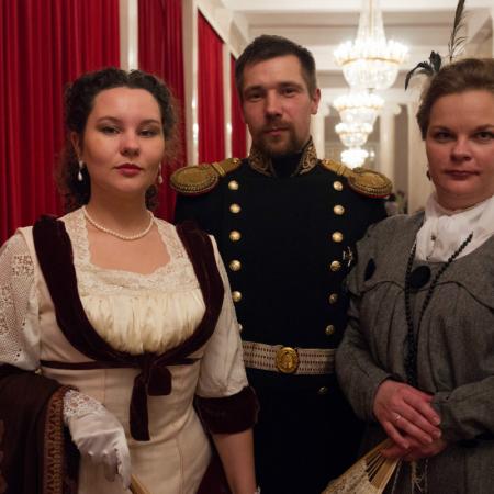 Светский (органный) вечер в Филармонии. Лейтенант Морского Гвардейского Экипажа с супругой. Девушки в одежде стиля модерн.